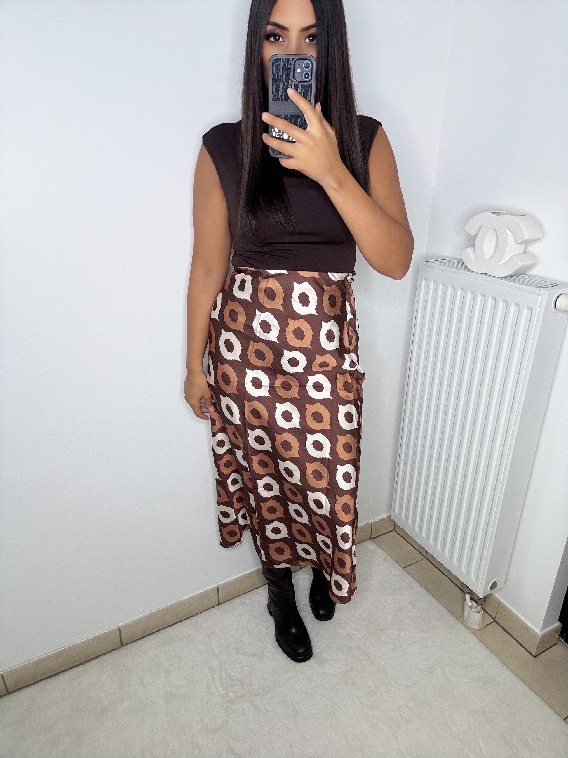 Jupe couleur automneOptez pour notre jupe Ambre avec ses couleurs d’automne parfaite pour la saison. Son tissu doux et brillant ajoute une touche de luxe à votre tenue. Avec sa coupe flatteuse, elle s'adapte à toutes les occasions. Restez élégante et confortable tout au long de la journée.