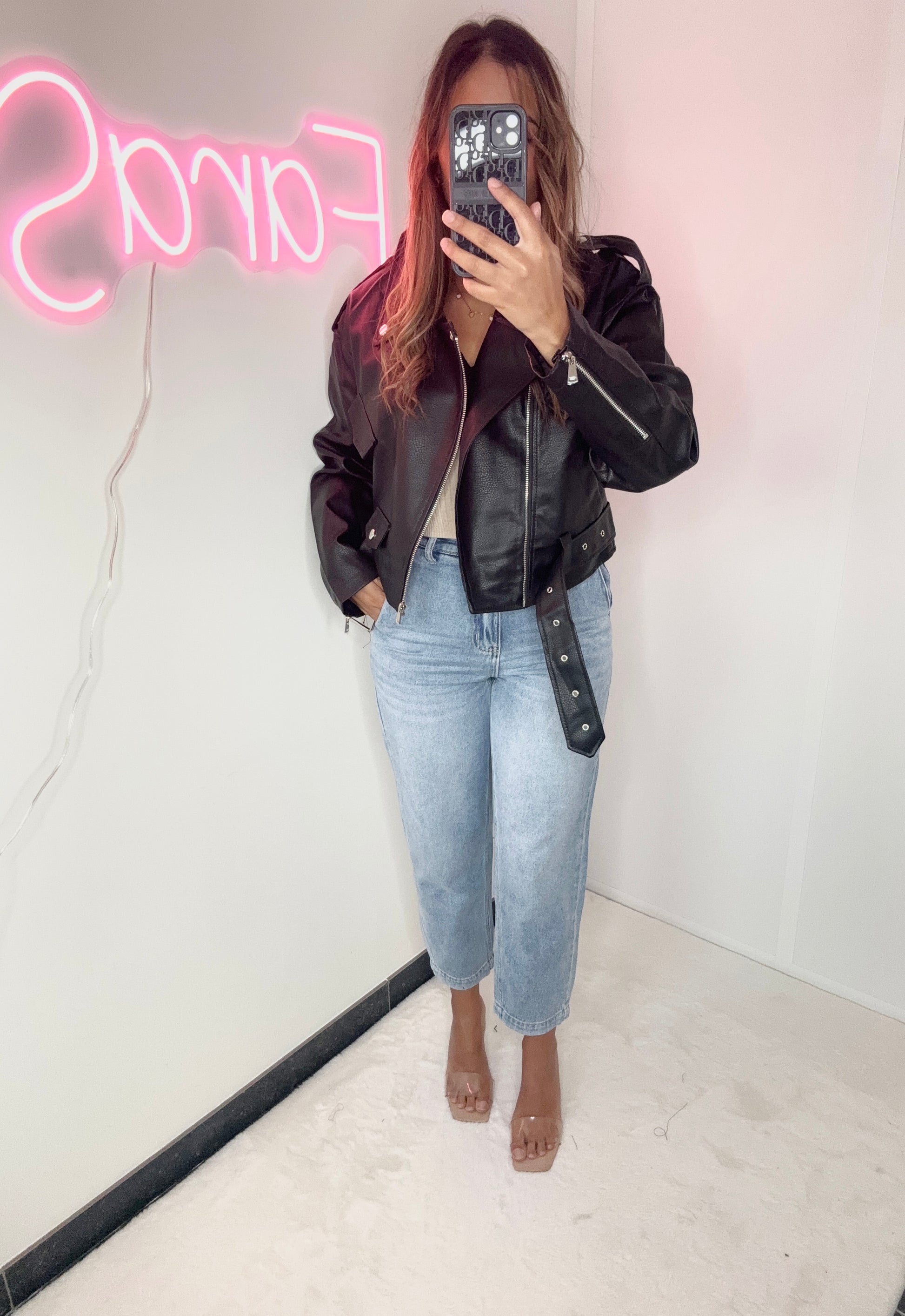 Le Perfecto simili est le choix idéal pour un look sans faille. Fabriqué avec notre imitation de cuir de qualité supérieure, il offre le même aspect et la même sensation qu'un vrai Perfecto, mais à un prix plus abordable. Ajoutez une touche de style à votre garde-robe sans compromettre la qualité.